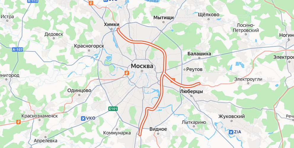 - ЦКАД и МСД — скоростные дороги Москвы и Подмосковья;