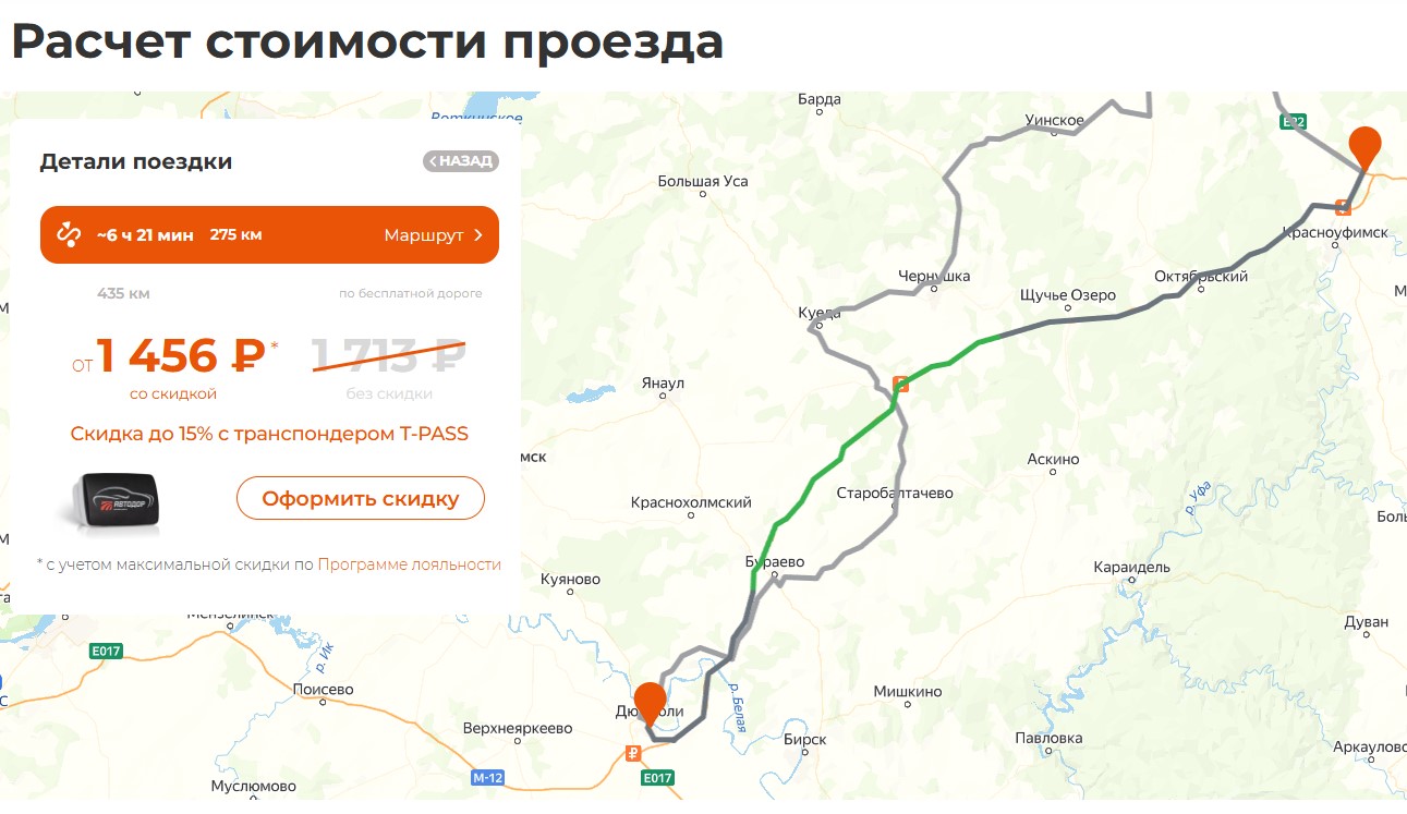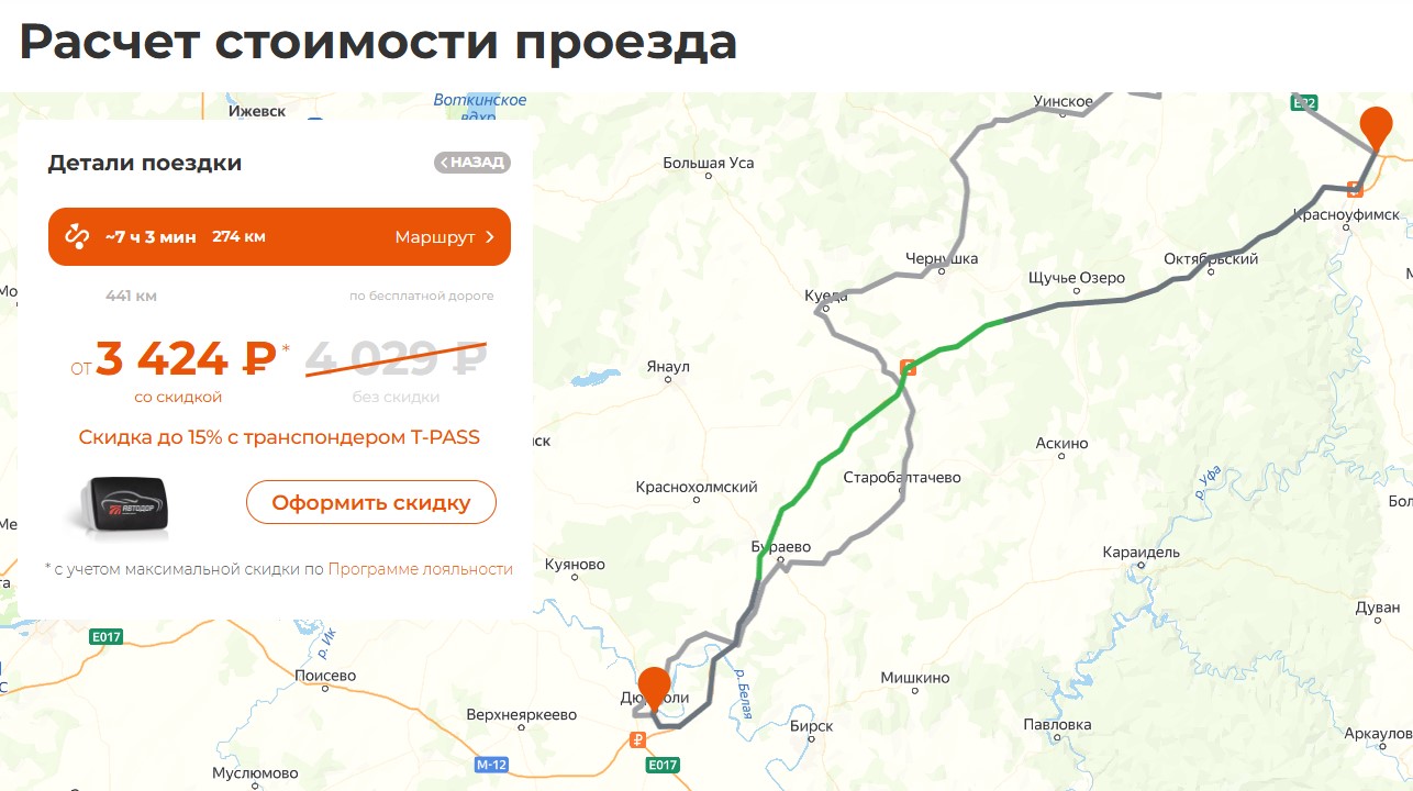 Тем не менее, на сайте «Автодора» в калькуляторе уже отображаются действующие расценки для проезда разных типов транспортных средств на участке Ачит – Дюртюли.