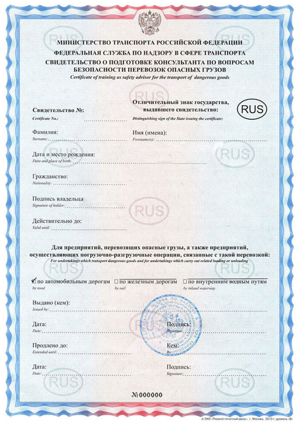 Документ оформляется в виде пластиковой карты с перечнем классов веществ, разрешенных к перевозке. Для международных рейсов документ оформляется на двух языках.