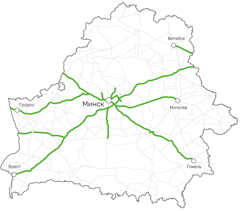 На территории Республики Беларусь взимание платы за проезд по платным дорогам осуществляет национальная электронная система BelToll. Она функционирует на определенных дорогах страны, в перечень которых входят следующие: